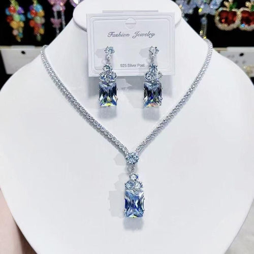 Blue Crystal Glow Silver Necklace & Earrings Set